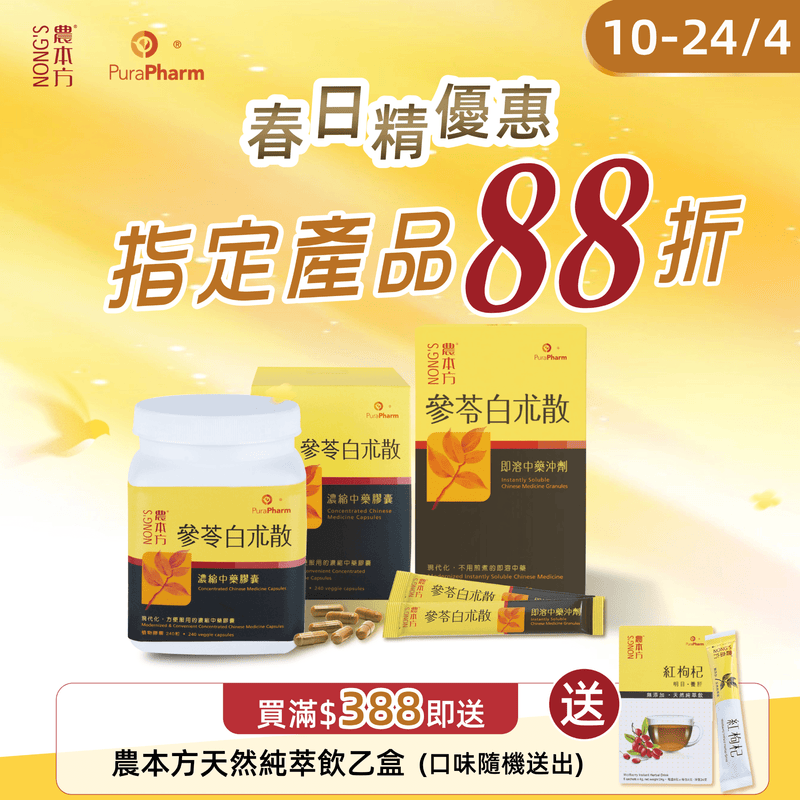 踏入春季,香港迎來「回南天」,濕度飆升。不少市民近日大呻疲倦乏力、浮腫及精神不振,往往誤以為只是工作壓力大。然而中醫指出,這些「假性疲勞」背後,很大原因是「濕氣困身」作怪。濕氣分「外濕」與「內濕」,外濕多受潮濕天氣及冷氣環境等外在因素影響;內濕則多與脾胃運化功能失衡有關。若未及時調理,隨時進一步拖垮整體健康。濕氣問題並非女性專屬,男士同樣不可忽視,男女都要關注。 濕氣過重常見徵狀,你中了幾項? 若想判斷自己是否有體內濕氣重的情況,可留意以下常見表現: 容易疲倦,元氣不足,體力下降 精神不振,專注力下降,狀態反覆 身體沉重、肚脹、浮腫,甚至出現大肚腩或虛肥情況 胃口欠佳、消化不適 皮膚出油較多,整體精神面貌欠佳 濕氣問題成因多,男女都應及早調理 對香港人而言,濕氣問題並非單一由天氣造成,亦與外賣多、生冷多、作息不規律、久坐少動及長時間處於冷氣環境等生活習慣有關。若脾胃本身較弱,濕氣更易積聚體內。無論男女,如反覆出現疲倦、浮腫、胃口差及精神欠佳等情況,都不應忽視日常調理。 日常除了可從飲食及作息入手外,亦可配合簡單穴位按摩作輔助,例如按壓小腿內側的「陰陵泉穴」及膝蓋下方的「足三里穴」,有助日常健脾化濕。平日亦有不少人會先從去濕氣食物或去濕氣茶入手作保健調理,但若相關不適反覆出現,仍應正視脾胃運化問題。 經典古方結合現代技術,農本方®參苓白朮散助日常健脾祛濕 中醫講求從脾胃入手調理濕氣,透過健脾與祛濕並行,從根源減少水濕積聚,更貼合「治本健脾、治標滲濕」的調理思路。針對都市人常見的濕重困擾,農本方®推出參苓白朮散系列產品,結合經典古方與現代技術,為日常調理提供快捷選擇。產品具備以下核心特點與功效: 農本方®參苓白朮散膠囊 全港唯一中成藥註冊:源自宋代經典方劑《太平惠民和劑局方》,主打益氣健脾、滲濕止瀉,先從調理脾胃體質入手,再幫助袪濕,更貼合治本調理方向。 男女適用:濕重問題不分男女,對反覆出現疲倦、浮腫及腸胃不適人士同樣適合 標本兼治,擊退假性疲勞:治本(健脾)與治標(滲濕)同步進行,有效擊退因「濕重」引致的假性疲勞與浮腫。 十味中藥材配伍,發揮協同效應: 農本方®參苓白朮散精選十味中藥材,各司其職,全面調理: 人參、茯苓、白朮:核心成分,着重健脾益氣,從根源改善脾胃虛弱。 山藥、蓮子、白扁豆、薏苡仁:配合健脾滲濕,促進體內濕氣排出,改善浮腫。 砂仁:有助醒脾和胃,改善胃口欠佳與消化不適。 桔梗:有助調理氣機,引藥上行。 炙甘草:調和諸藥,增強整體配方的協同效果。 兩款選擇切合不同生活節奏 為照顧不同人士的服用習慣,農本方®參苓白朮散提供兩款選擇: 參苓白朮散沖劑(14 包):每日2次(早晚餐後),每次1包,共7天試用裝體驗份量。以熱水攪拌後服用,與其他藥物建議相隔2小時;如有疑問,可諮詢註冊中醫師。 參苓白朮散(植物)膠囊(240 粒):每日2次,每次4粒,1瓶約爲30天療程。更加濃縮、方便吞服,適合忙碌人士日常持續調理。 相比傳統煎藥程序,沖劑及膠囊劑型均更貼合現代生活節奏,讓健脾祛濕的調理方式更方便融入日常。 兼顧品質與便利性,推動中藥現代化應用 作為培力旗下核心品牌,農本方®多年來致力推動中藥現代化發展,並已連續十年成為全港處方濃縮中藥銷量領先品牌。品牌除提供濃縮中藥配方顆粒外,亦涵蓋中醫診症服務及現代化配藥系統,持續推動中醫藥在現代都市生活中的應用。 在品質管理方面,農本方®產品於符合 GMP 標準並獲澳洲 TGA 認證的廠房生產,並通過重金屬、農藥殘留、微生物及有毒元素等多項安全測試,確保品質安全可靠。部分產品亦採用植物膠囊,不含防腐劑、色素及甜味劑,回應現代消費者對便利性及安全性的需求。 農本方®參苓白朮散系列限時 88...